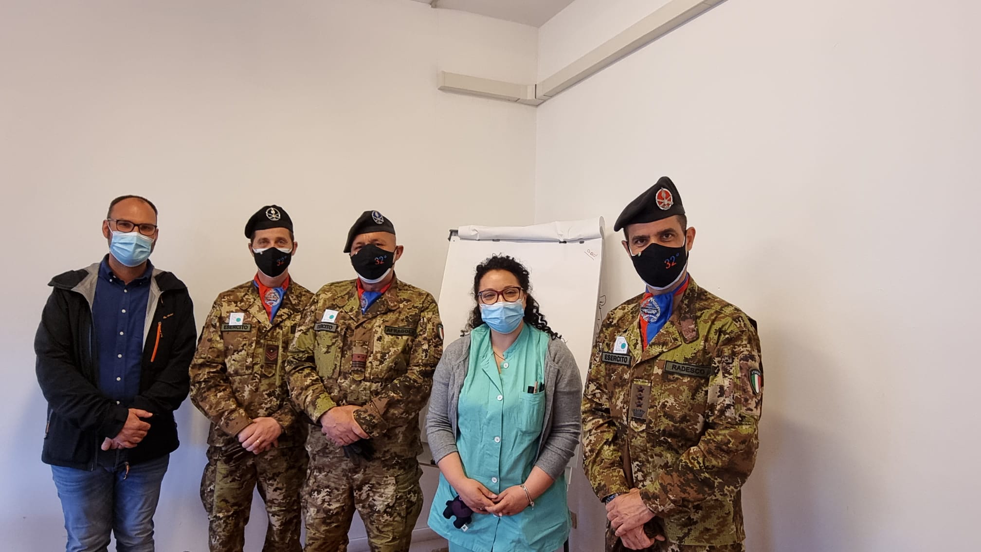 Personale sanitario della Pediatria e della Chirurgia e alcuni rappresentanti del 32° Reggimento Carri di Tauriano di Spilimbergo