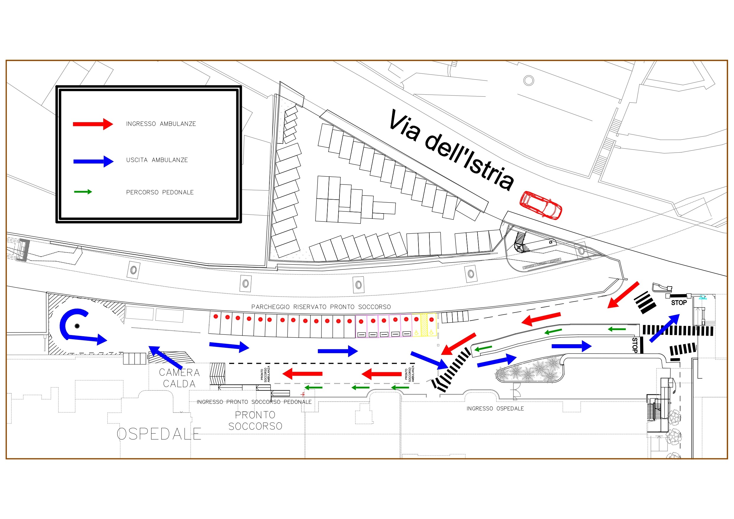 L'area parcheggio antistante al nuovo percorso sarà riservata  esclusivamente all'utenza diretta al Pronto Soccorso.