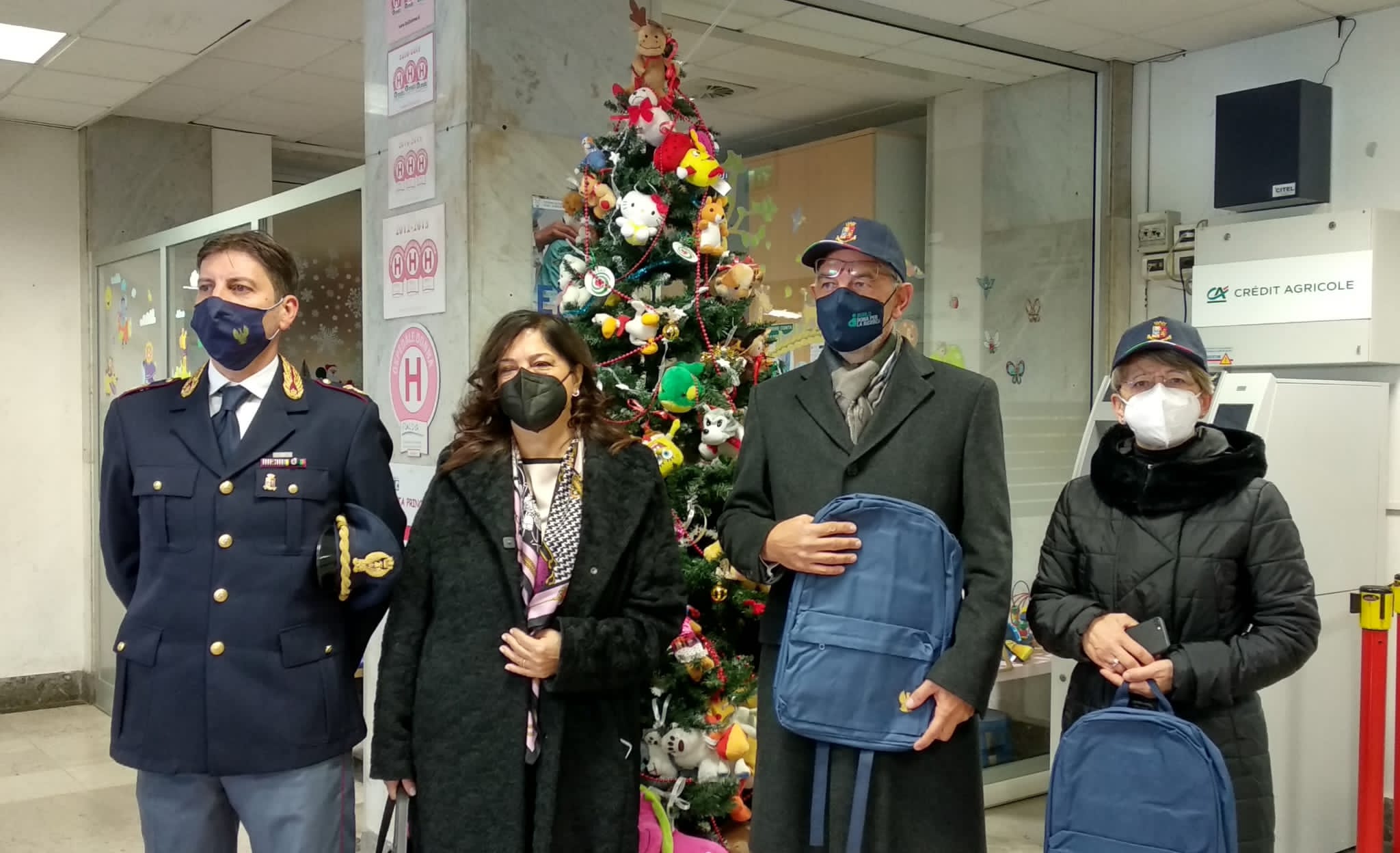 2021,16 dicembre: Dalla Polizia di Stato zaini e cappellini per i piccoli pazienti del Burlo