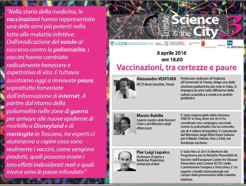 3a edizione di Trieste Science & the City - 4x60 minuti di scienza, dall'ICGEB Trieste, aprile-maggio, 2016