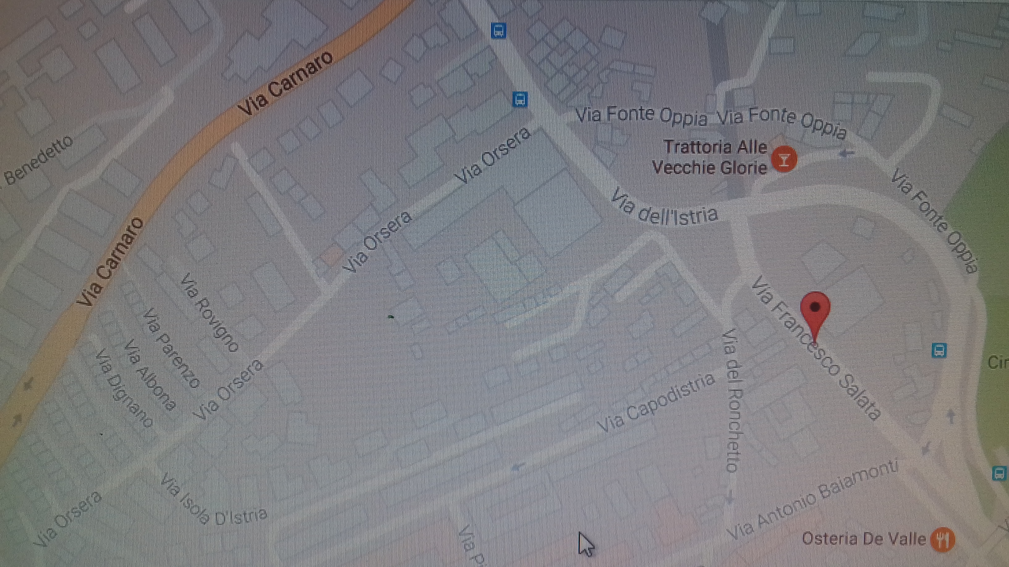 In macchina: da piazza Foraggi percorrere la galleria omonima e uscire in v. Salata (l.go Baiamonti) Proseguire per v. dell'Istria fino al n. 65/1.