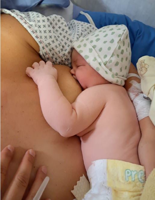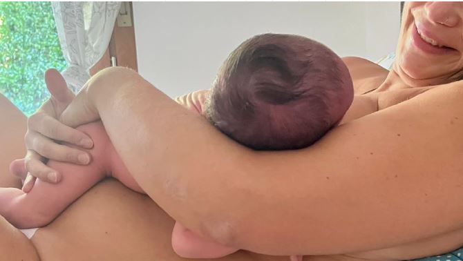 Bimbo appoggiato ventralmente sul corpo semireclinato della mamma