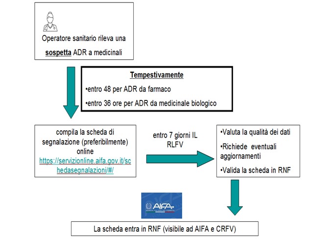 La segnalazione delle sospette reazioni avverse ed il loro inserimento nella rete nazionale di farmacovigilanza (RNF) consente la rilevazione e l’analisi, nella fase post marketing, di potenziali segnali di sicurezza relativi ai medicinali, da parte dei Centri Regionali di farmacovigilanza (CRFV) e di AIFA.