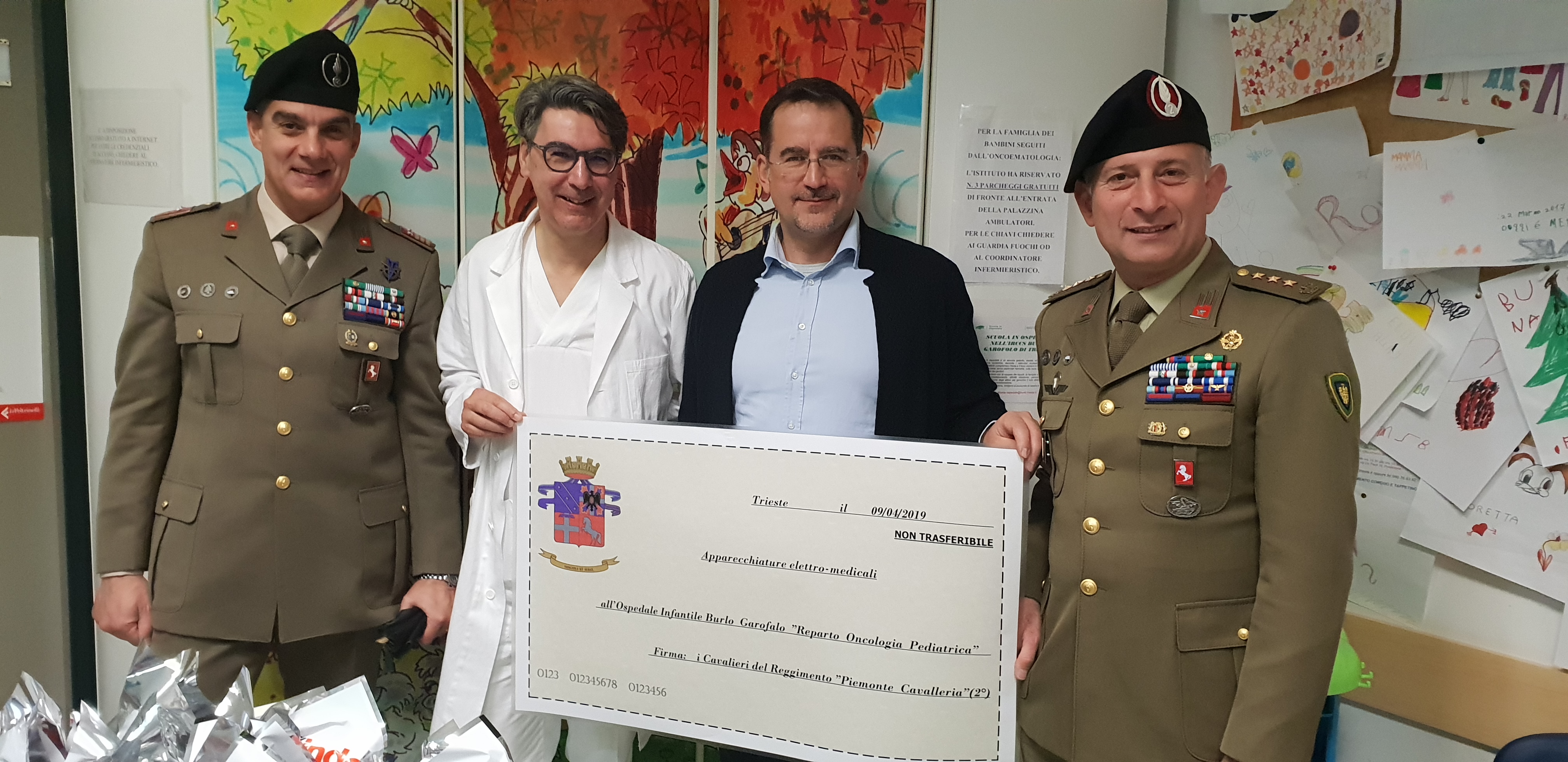 I rappresentanti del Reggimento Piemonte Cavalleria 2° donano all' Oncoematologia del Burlo Garofolo.