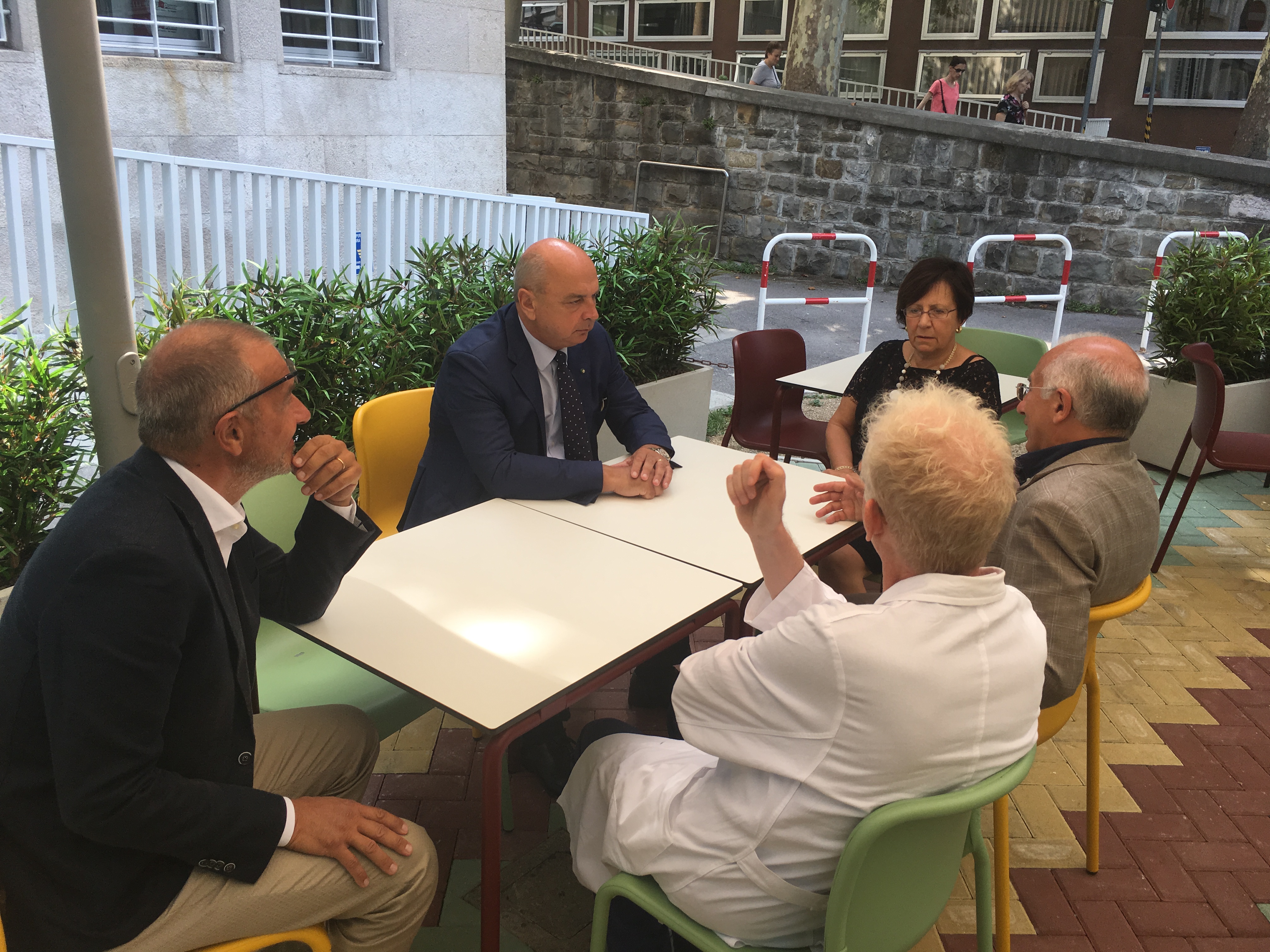 Il Sindaco di Trieste, Roberto Dipiazza, si è recato oggi l’IRCCS Burlo Garofolo, incontrando il direttore generale Gianluigi Scannapieco insieme alla direzione scientifica, sanitaria e amministrativa. Il Sindaco ha potuto così visitare l’ospedale materno infantile e il nuovissimo bar all’interno dell’istituto inaugurato proprio la scorsa settimana.